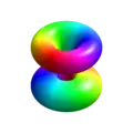 This number also gives information as to what the angular node of an orbital is. A node is defined as a point on a standing wave where the wave has minimal amplitude. When applied to chemistry this is the point of zero-displacement and thus where no electrons are found. In turn angular node means the planar or conical surface in which no electrons are found or where there is no electron density. The models shown on this page show the most simple representations of these orbitals and their nodes. More accurate, but more complex depictions are not necessary for the scope of this book.