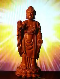 4. God radiates from us to all of our fellow beings. We send light to everyone, move the hand in a blessing and say “May all humans be happy. May the world be happy.”