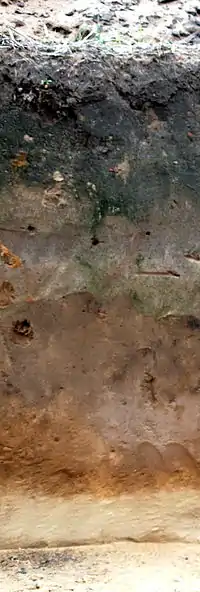 Leaching[2]Rapid, washes away potassium, sodium, magnesium and calcium, as well as siliconHeavy rainfall