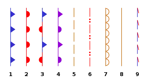 The map symbols for the different types of fronts are shown in (Figure 16.15): (1) cold front, (2) warm front, (3) stationary front, (4) occluded front, (5) surface trough, (6) squall line, (7) dry line, (8) tropical wave.