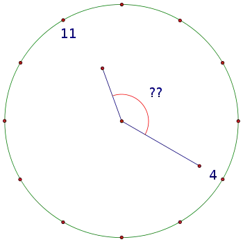 - (a) What is the angle between each number of the clock expressed in: