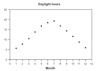 - (c) How might the graph look different if the data represented daylight hours where you live?