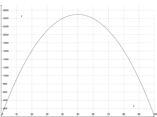 Example 6 You have 100 feet of fence with which to enclose a plot of land on the side of a barn. You want the enclosed land to be a rectangle. a. Write a function to model the area of the plot as a function of the width of the plot. b. Graph the function using a graphing calculator. c. What size rectangle should you make with the fence in order to maximize the area of the rectangular enclosure? d. Explain the significance of the x−intercepts. Solution: The plot of land will look like the picture below: