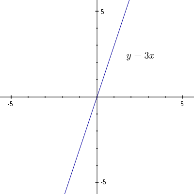 All of these functions can be used to represent real situations. For example, the linear function y = 3x was used above to represent how much money you would make selling candy bars for $3.00 each. This type of situation is known as direct variation. We say that the amount of money you make varies directly with the number of candy bars you sell. Direct variation between two variables will always be modeled with a linear function of the form y = mx. The slope of the line, m, is the constant of variation. Notice that the y−intercept of the line is 0; that is, the line contains the point (0, 0). This makes sense in terms of the candy selling situation: if you sell 0 candy bars, you make 0 dollars.