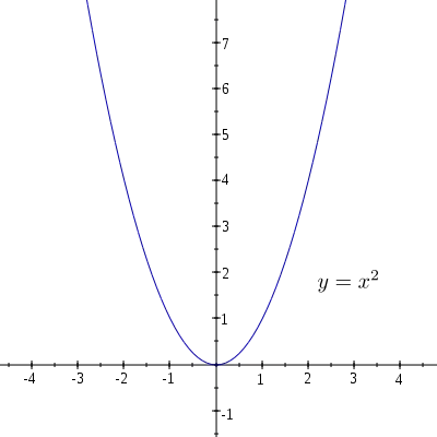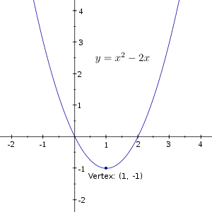 Quadratic y = x2 These functions have a highest exponent of 2. The graph is a parabola, which has a vertex that is either a global maximum or minimum of the graph. The vertex is the point (1, -1). The graph is symmetric across the line x = 1.