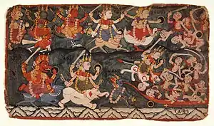 The Goddess Ambika or Durga Leading the Eight Matrikas in Battle Against the Demon Raktabija, Folio from Devi Mahatmya, Markandeya Purana.