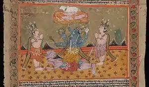 An illustration of Varaha avatar based on the Bhagavata Purana