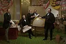 The area of land that would become Alaska was originally occupied by various groups of Indigenous peoples as well as traders from Britain, America, and Russia. Outsiders had interest in this area for trading possibilities. Being some of the first foreigners to occupy the area, the Russians were frequent traders with Indigenous peoples of the region and established the Russian-American Company at the end of the 18th century. In September 1821, Tsar Alexander I extended Russian territories to the fifty-first parallel of north latitude along the Northwest Coast of North America by issuing a ukase, forbidding any other group from trading with Indigenous people within this zone. A ukase was an arbitrary command issued by the Russian government. In addition to forbidding trade and fishing, the ukase also closed access to foreign ships entering through Russian waters along the coast. However, not all limitations made by the ukase were enforced, meaning many ships continued to pass through Russian waters. Tsar Alexander I, argued that the ukase was justified because Russia had first discovery claims to the area and had occupied the region peacefully for over half a century. Russia’s decision to implement this restrictive law was not driven by territorial expansion but instead by a policy of aggression against the growing numbers of British and American traders in the area. While ships did continue to pass through Russian waters, the news of the ukase was ill-received in the United States and generated protest from its citizens for the country to take a firm stance against Russia. The United States government was mainly concerned about the limitations the ukase placed on trade and fishing on the coasts rather than concerns about Russia's territorial possessions.