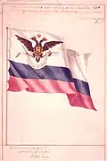 Russia first arrived in Alaska in the early-to-mid eighteenth century and are thought to be the first Europeans to reach the modern-day state. After first contact, the Russian-American Company would be born. The company became the first ever Russian joint-stock company created at the end of the eighteenth century by Tsar Paul I in the Ukase of 1799. The company originally started with Nikolai Petrovich Rezanov, son-in-law of a former fur trader, Shelikhov, obtaining a 20 year contract from Tsar Paul I. Tsar Paul I granted Rezanov a monopoly over the Alaskan fur trade, with a donation of 724,000 rubles from the Russian royal family. The main purpose of the company was to aid in the colonization of modern-day Alaska, as well as establish trading relationships between Aboriginal groups and the Russians. Outside of mainland Alaska, the company also controlled posts and settlements throughout the Bering Strait, as well as some regions in the lower Pacific Northwest. Although the land claims by the Russians were legitimate, Great Britain and America challenged the borders set out by the Tsarist government. However, these disputes were put to rest by treaties agreed on at international conventions. These treaties would firmly set Russia’s Southern and Eastern boundaries in Alaska. The Russian-American Company's issued their flag in 1799 and used on the company's ships and settlements throughout Alaska. The flag changed a few times throughout the company's history, starting with the original design only being used until 1806 when Tsar Alexander I approved a new design. While there were several variations of the flag, it was used up until 1881 while the company was being liquidated, even though the company ended in 1867.