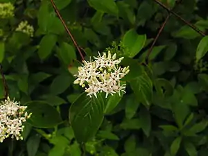 The Swamp Dogwood (Cornus amomum) is a shrub native to eastern North America, commonly found in wetlands and along streambanks. It is rarely planted in gardens, but is useful for stabilizing stream and river banks.