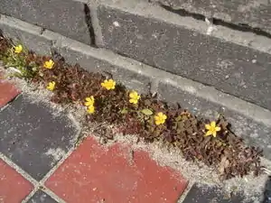 Creeping wood sorrel (Oxalis corniculata), also known as yellow wood sorrel and procumbent yellow sorrel, is a somewhat delicate-appearing, low-growing, herbaceous plant in the family Oxalidaceae. It is commonly found as a weed of lawns, gardens, and pathways.