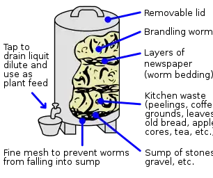 - Pests - certain types of material, as well as odours from these, can attract pests such as rodents and flies. This is especially true if the loading contains lots of kitchen waste, especially meat. This problem is largely negated if a sealed bin is used where the pests cannot access the material. Most domestic vermicomposters are advised by local authorities to avoid the problem of pests by avoiding using materials that attract them rather than relying on special containers.