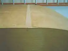 When you pull the tape it will leave the nice straight edge. You can continue on with masking tape and more Bondo as required to cover the entire seam. After you are finished, let the Bondo fully cure. You can then carefully sand the bondo smooth so that it looks like a moulding. You can try painting it if you like but try it on a test piece first. Its really better just to leave it plain. Later you will apply urethane varnish over the trailer and over the Bondo seams.