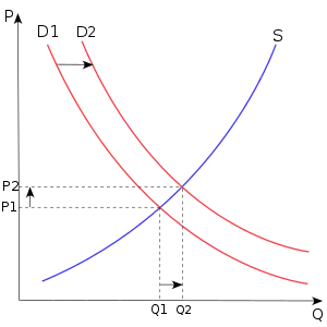 - Tastes and preferences: more people may want the product or service (a product becomes 'fashionable') and demand shifts out