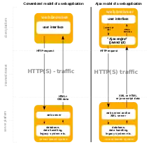Many modern websites use a technology called AJAX, for fast and effective interaction with the visitor. AJAX has become a very popular method to retrieve data from the server in the background and the Dynamic Update page. AJAX stands for "Asynchronous JavaScript And XML". Developing code to JavaScript for AJAX implementation from scratch is very time consuming and tedious process. However, many libraries JavaScript, including jQuery, have excellent high-level AJAX implementation as a set of methods and functions that make it easier and faster to build web sites. AJAX is a development technique for Web applications in which JavaScript code in the visitor's browser communicates with the web server asynchronously, i.e. in the background. When you click links or forms contained on Convectional Web page a request is being sent to a new URL on the web server. The server sends a completely new page of HTML, which a browser displays, replacing the original page. When using technology AJAX, JavaScript code makes a request to the URL on the server. The code may also send the data along with the request. JavaScript code then processes the response from the server, and acts accordingly. For example, the calculation can be made with the returned data is added or updated widget on the page, a message to the visitor to update the database on the server. Since AJAX request runs in the background, the code JavaScript (and a visitor) can continue to work with the page during query processing. The process is hidden from the visitor, who does not need to leave the page they are currently viewing time. This makes the page with AJAX is very pleasant to use. [42]