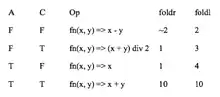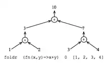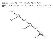 The function foldl is very similar to foldr; however, it starts evaluating the binary operation from the left side of the list towards its right side. A few examples of use are given below: