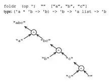 - foldl (op ^) "" ["abc", "def", "ghi"];