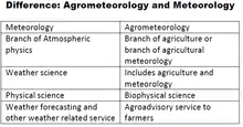 Agrometeorology or Agricultural meteorology studies meteorological and hydrological factors in relation to agriculture. Agrometeorology studies the behaviour of the weather elements that have direct relevance to agriculture and their effect on crop production.