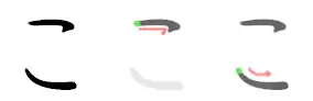 It looks like the head of a cock (rooster). The neck and wattle are on the left, and the beak is the stroke on the right. |