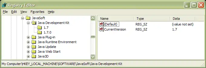 The resultant would be similar to figure 1.2, with the only exception being the version entries for the Java Development Kit. At the time of writing this manuscript, the latest version for the Java Development Kit available from the Internet was 1.7 as seen in the Registry entry. If you see a resultant window that resembles the one presented above, it would prove that you have Java installed on your system, otherwise it is not.