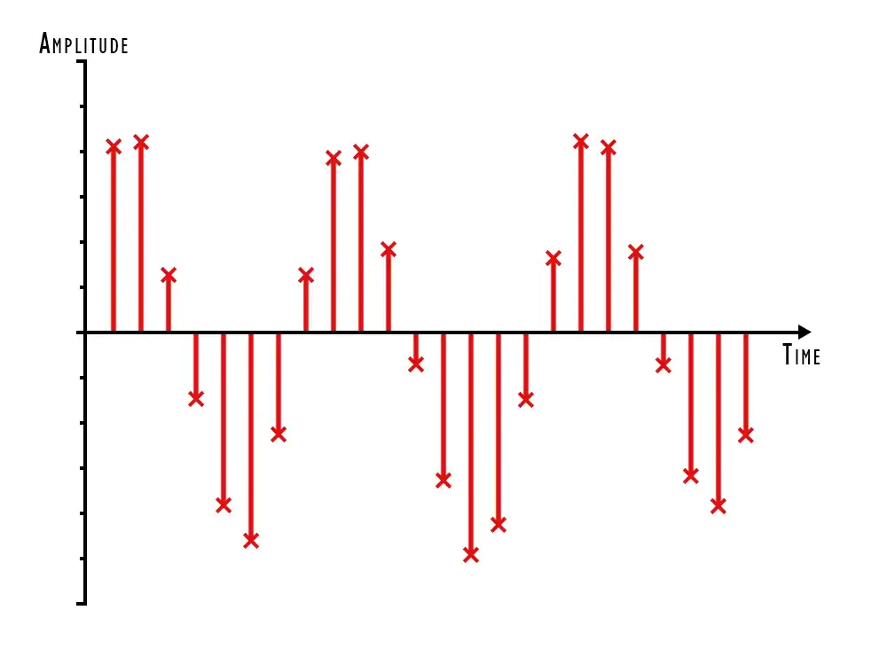 In digital recording, however, you don't have a constant recording of what's going on. Instead, you have a series of samples taken from the sound being recorded.