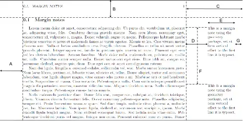 - the value G = C − (D + E) is the separation between the edge of the margin note and the edge.