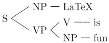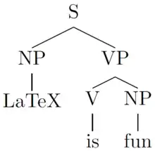 \Tree [.S [.NP LaTeX ] [.VP [.V is ] [.NP fun ] ] ]