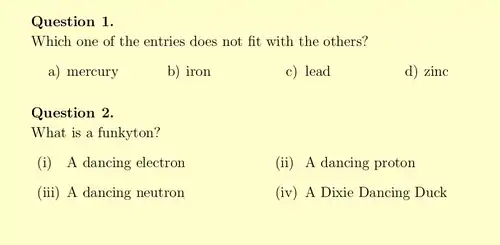 LaTeX. Itemize, enumerate, and description. |