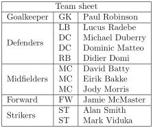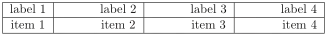 The number of columns does not need to be specified as it is inferred by looking at the number of arguments provided. It is also possible to add vertical lines between the columns here. The following symbols are available to describe the table columns (some of them require that the package array has been loaded):