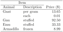 Many professionally typeset books and journals feature simple tables, which have appropriate spacing above and below lines, and almost never use vertical rules. Many examples of LaTeX tables (including this Wikibook) showcase the use of vertical rules (using "|"), and double-rules (using \hline\hline or "||"), which are regarded as unnecessary and distracting in a professionally published form. The booktabs package is useful for easily providing this professionalism in LaTeX tables, and the documentation also provides guidelines on what constitutes a "good" table.