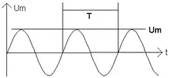 This image shows the amplitude of the AC signal, denoted as Um. This is the highest value the signal reaches.