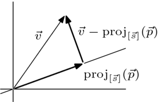 which leaves the part, pictured above, of that is orthogonal to (it is orthogonal by the definition of the projection onto the span of ). Note that, by the corollary, is a basis for .