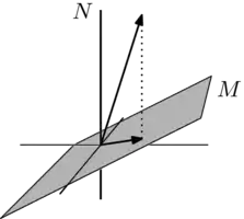 Notice that the projection along is not orthogonal there are members of the plane that are not orthogonal to the dotted line. But the projection along is orthogonal.