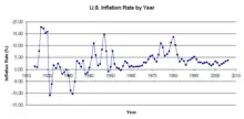 Annual inflation rates in the United States of America, 1914-2006.