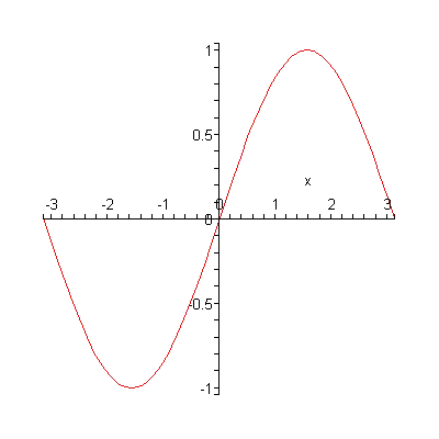 >plot(cos(x), x=0..2*Pi); #Image on the left >a:=Pi: #Affecting the variable a to equal pi >plot(sin(x), x=-a..a); #Image on the right