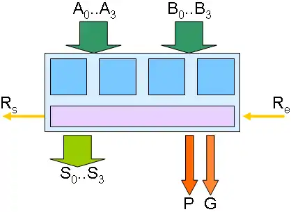 A generalized CLA block diagram. Each of the turquoise blocks represents a smaller CLA adder.
