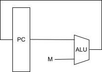 In this image, the PC value is either loaded with an updated version of itself, or else it is loaded with a new Branch Address. For simplification we do not show the control signals to the MUX.