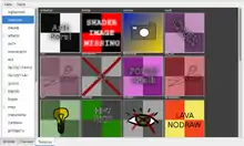 A shader is a dynamic texture, generated in real-time with GLSL. Many of the images listed are not actually textures but shaders instead; shaders make dynamic textures such as lava, water, glass, and skydomes possible. Note that shaders are not used in the camera view; they will instead use the shaders' default texture.