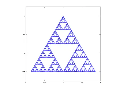The code that generates this fractal is shown bellow. Note that this code uses one very simple for loop to generate the fractal (for i = 1:N ; ... ; end)