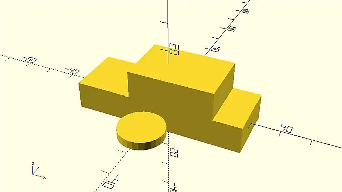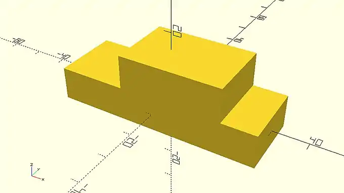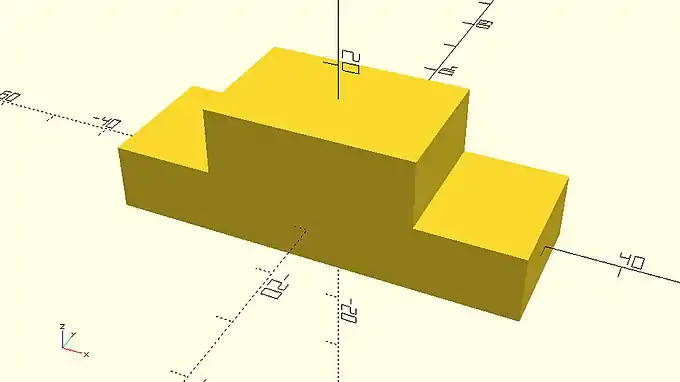 On the example above, the second cube sits exactly on top of the first cube. This is something that should be avoided as it’s not clear to OpenSCAD whether the two cubes form one object together. This issue can be easily solved by always maintaining a small overlap of about 0.001 - 0.002 between the corresponding objects. One way to do so is by decreasing the amount of translation along the Z axis from 10 unit to 9.999 units.