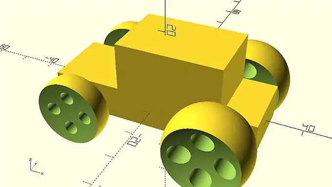 car_with_different_wheels.scad module wheel(wheel_radius, side_spheres_radius, hub_thickness, cylinder_radius) {