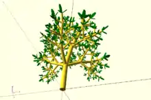 The code below generates a crude model of a tree. Each tree branch is itself a modified version of the tree and produced by recursion. Be careful to keep the recursion depth (branching) n below 7 as the number of primitives and the preview time grow exponentially.