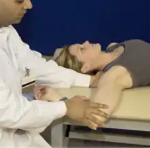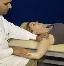 - Clavicle internal rotation: the shoulder is abducted to 90o and rotated forward about the elbow