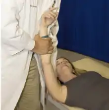 - Clavicle external rotation: the shoulder is abducted to 90o and rotated backward about the elbow