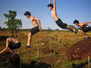 When landing (either from a two footed or running take off) it is important that you land on the balls of your feet with your feet together and furthermore "stick" the jump meaning you do not fall forwards or backwards off of the obstacle. the larger distance/smaller the object you are landing on, then the better you are progressing.