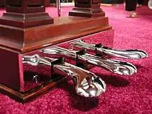 The middle pedal, called sostenuto, is rarely used, but is indicated in music with clear instructions. This pedal keeps the dampers up that were raised when it was depressed, enabling staccato play independent of the sustained note. It is sometimes used arbitrarily by pianists who cannot hold down a pedal tone. On smaller piano models (uprights, consoles, etc.) the sostenuto is usually replaced by the celeste or practice pedal. This pedal is indicated by an indentation next to the pedal's most depressed state, allowing the pianist to slide it into a continuously depressed position. The celeste is not used in standard performance, and was created for practical reasons. When depressed, all notes are softer than the una corda. Use this pedal (if your piano has it) if quietude is a necessity.