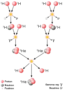 The Proton-Proton Chain Reaction, the main type of fusion the occurs in the Sun's core.