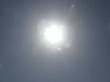 The Sun in the sky as viewed from Earth.