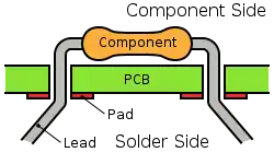 Through-hole mounted (THM) components are components with leads that protrude through a PCB and are soldered in place on the other side to the components.