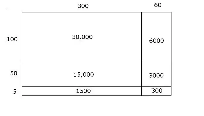 Note that in the above model, the height and width (base) of the larger area rectangle has been broken up into smaller area rectangles based on the place holder of each digit in each number, making it a representation of the standard algorithm for multiplication: